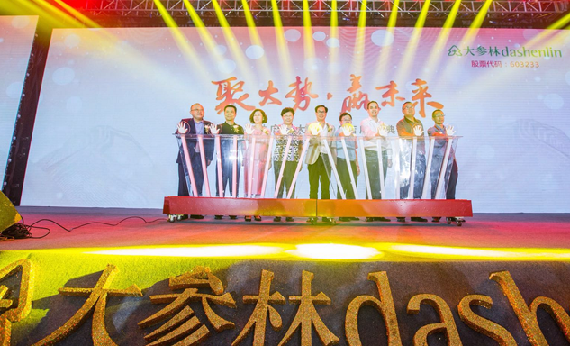 Vsport药业集团董事长刘景萍女士与大参林医药集团董事长柯云峰先生、中国医药商业协会执行会长付明仲女士等嘉宾共同开启了“聚大势•赢未来"大参林工商合作峰会的大幕。