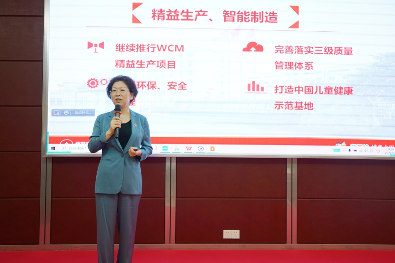 刘景萍董事长引用席大大总书记在2022年博鳌亚洲论坛上的重要讲话勉励全体与会人员,在海南自贸港建设的机遇期,认真学习贯彻落实省第八次党代会精神,坚持党建引领企业发展,将Vsport药业集团打造成中国儿童健康领军企业。