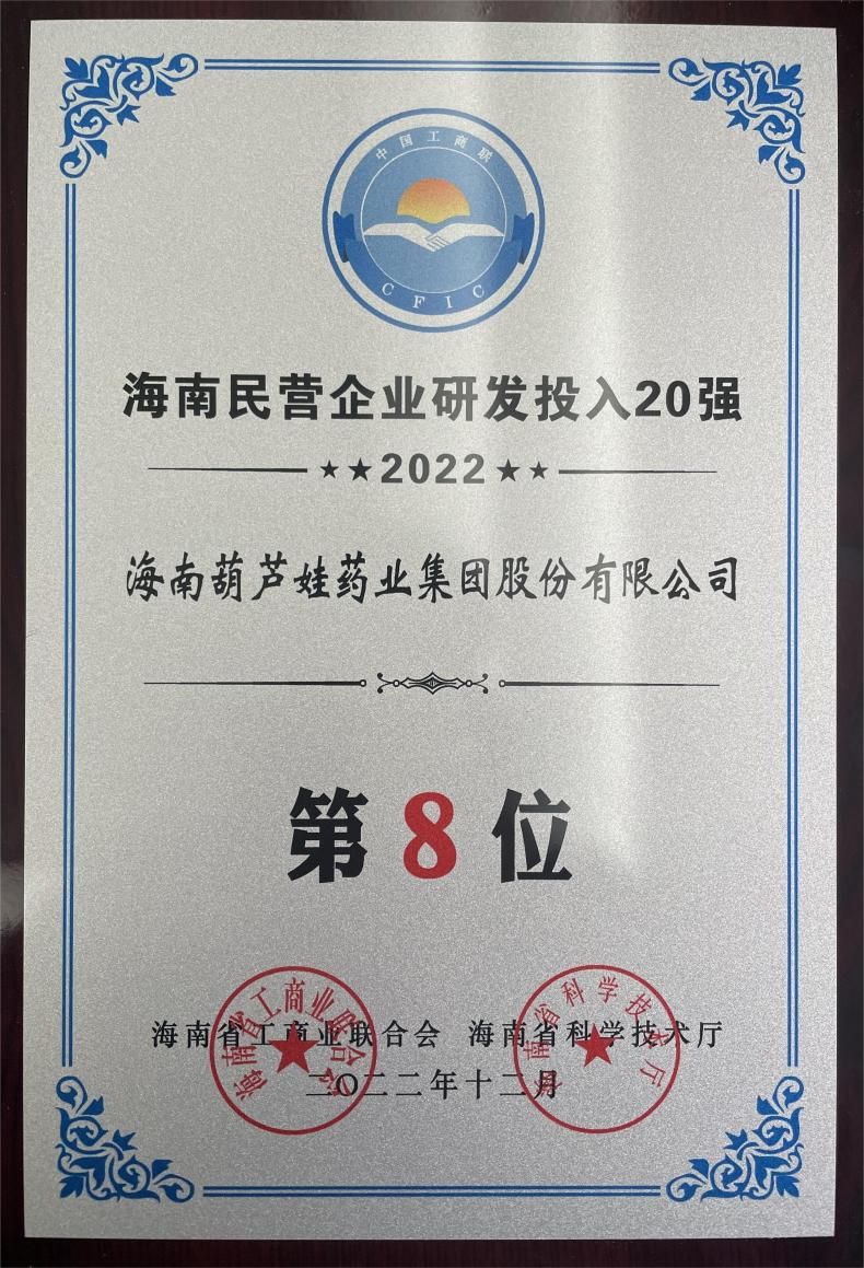 12月23日,2022海南民营企业50强和研发投入20强发布会在海口举行。会上发布了“2022海南民营企业50强”“2022海南民营企业研发投入20强”榜单和分析报告。Vsport药业再次荣登两榜,在海南民营企业50强榜单中位列第25位,较去年上升8位,这也是公司连续三年登榜;在海南民营企业研发投入20强中位列第8位,较去年上升7位。