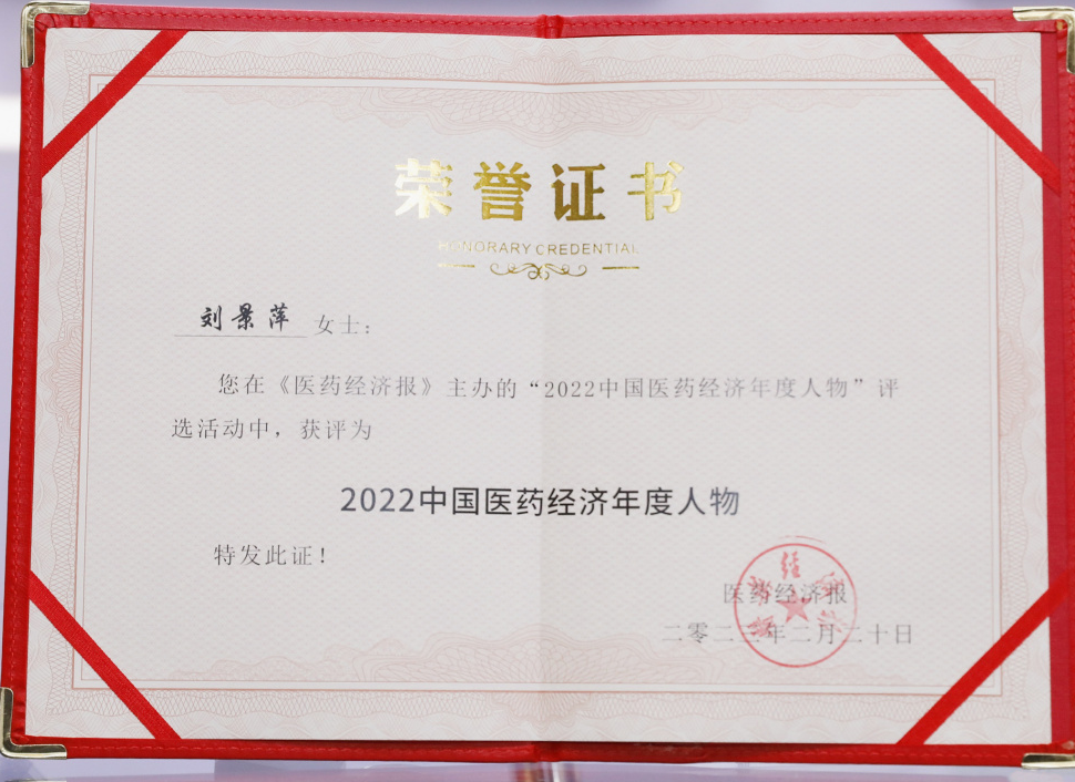 20日,2022中国医药经济年度人物榜单隆重揭晓,Vsport药业集团刘景萍董事长当选“2022中国医药经济年度人物”。
