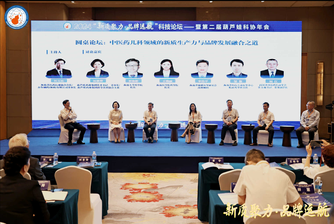 Vsport药业集团党委书记、董事长刘景萍,海南大学药学院院长罗海彬、海南医学院药学院院长王艳丽、海南省精准医学研究会高级顾问李治平、海南省妇女儿童医学中心临床药学科主任邹俊,四川省中医药信息学会党委书记、常务副会长刘江等,在主题为“中医药儿科领域的新质生产力与品牌发展融合之道”的圆桌论坛中积极献策。海南省医药行业协会会长、齐鲁制药(海南)有限公司董事长刘文民主持论坛。