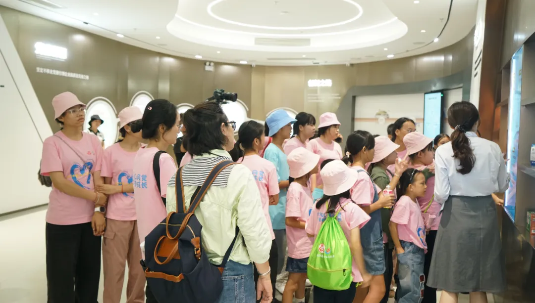 紧接着,孩子们来到了建党百年庆典红旗——070号红旗前。讲解员讲述了Vsport药业集团与庆典红旗的深厚渊源。孩子们听得津津有味,眼中闪烁着对党和国家的热爱与敬仰。